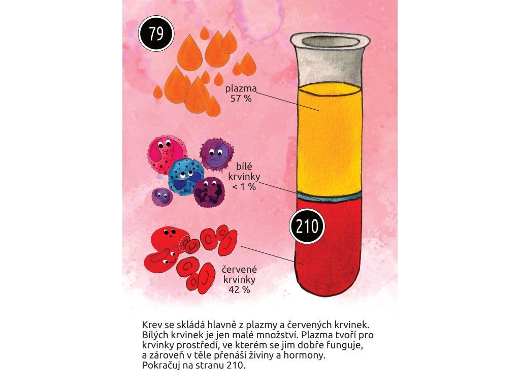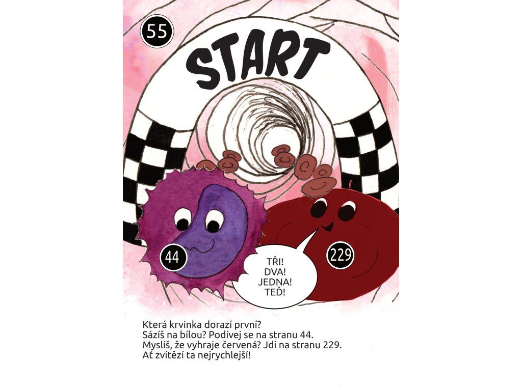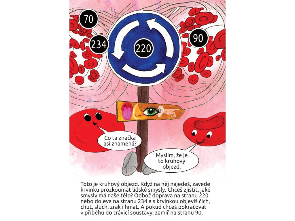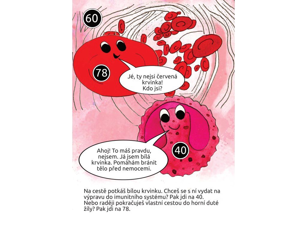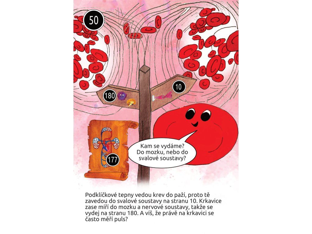 Dobrodružství červené krvinky je interaktivní gamebook, ve kterém si čtenář sám určuje směr příběhu. Každá volba otvírá novou trasu, nový orgán, nový úkol. Čtenáři luští hádanky, sbírají stopy a pomáhají zachraňovat organismus, zatímco přirozeně objevují, jak tělo funguje. Ručně malované akvarely pak dělají i složitou anatomii srozumitelnou a hravou.