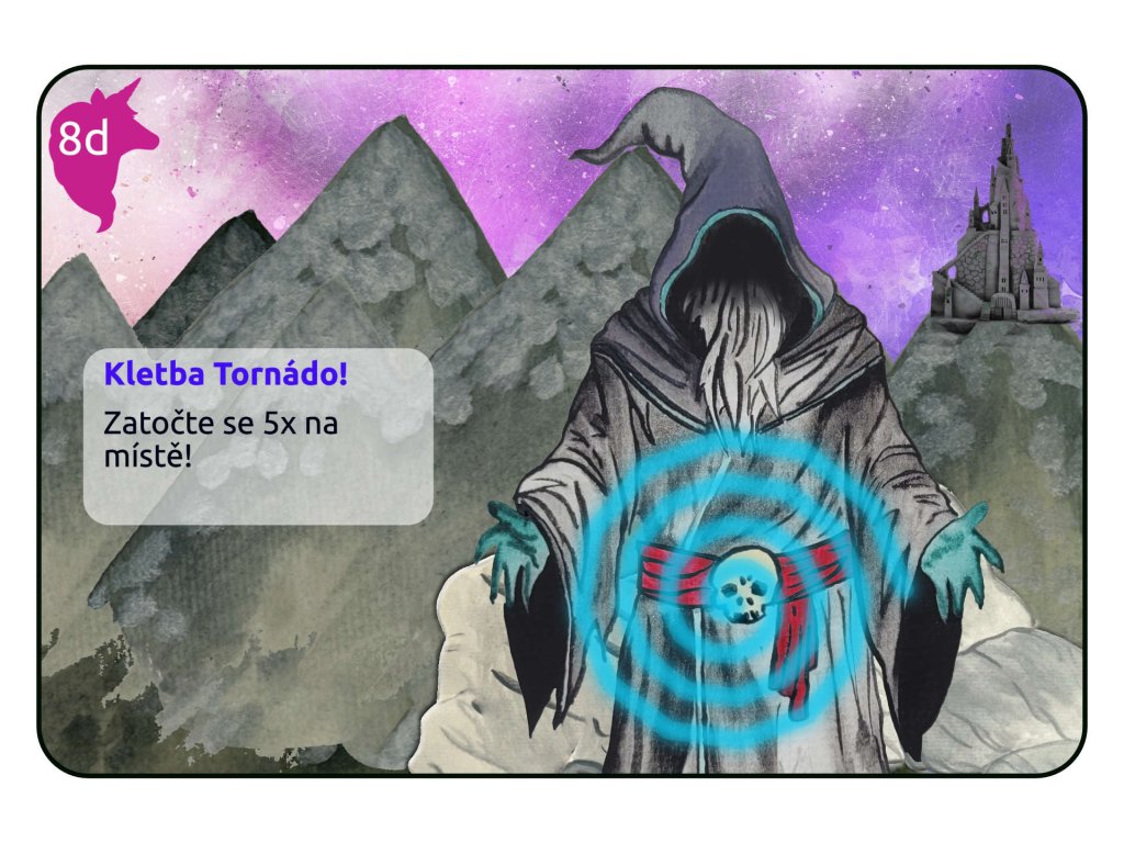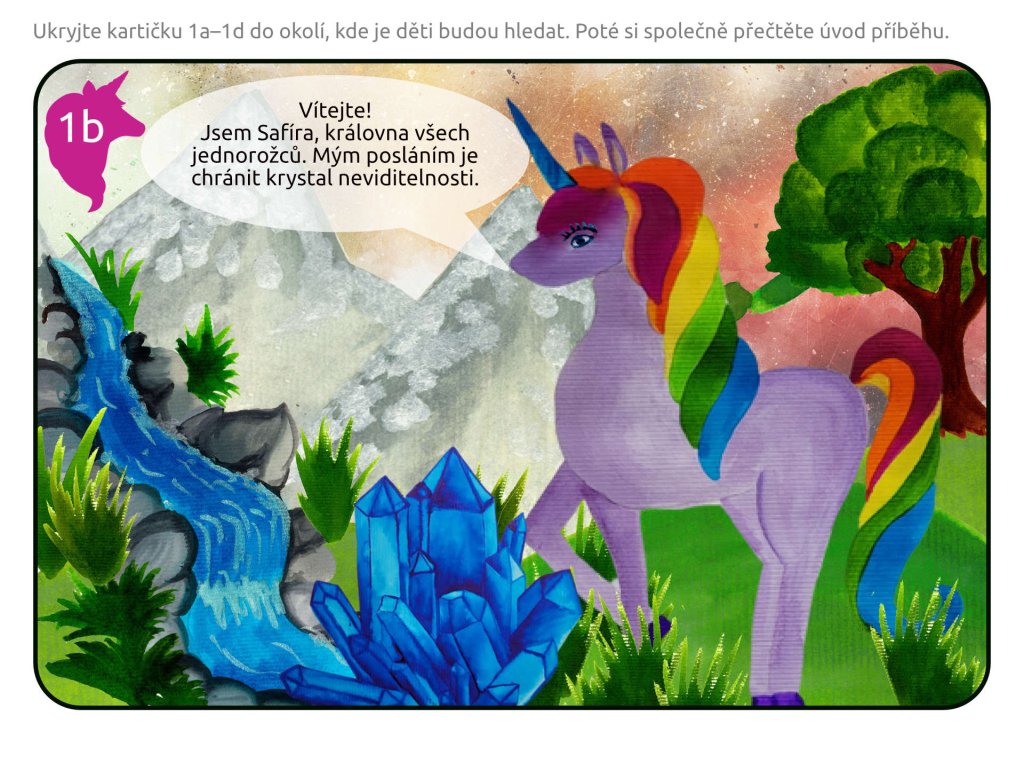 - rozsáhlý PDF soubor s dobrodružným příběhem a ručně malovanými ilustracemi o záchraně magické říše jednorožců a draků před zlým černokněžníkem Morgrathem. Soubor obsahuje pestrou kombinaci kreativních, pohybových i naučných aktivit. Honba za pokladem je velmi obsáhlá, lze ji rozložit do více hracích dní a baví děti i opakovaně.